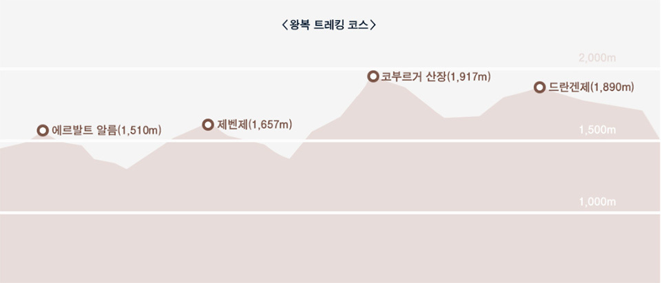 누구나 즐길 수 있는 산악 여행의 트레킹으로